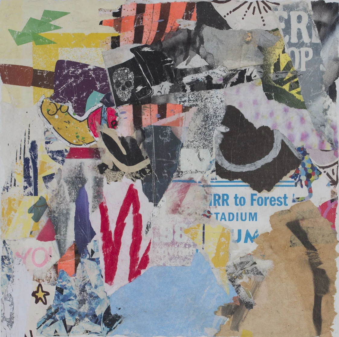ALL CAPS - These Décollage works begin with the collection of precious, delicate paper materials. The materials include advertisements, notices and artworks in various stages of weathering and decomposition. The material collection and composition process leads to unique, organic works of beauty. Through this process of collecting, sorting, composing and assembling the works, various palettes, themes, commentary and aesthetics emerge.